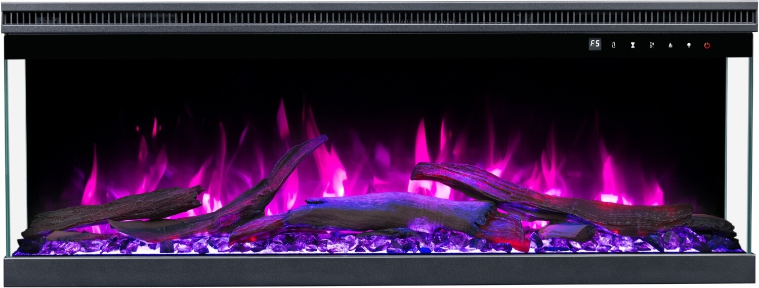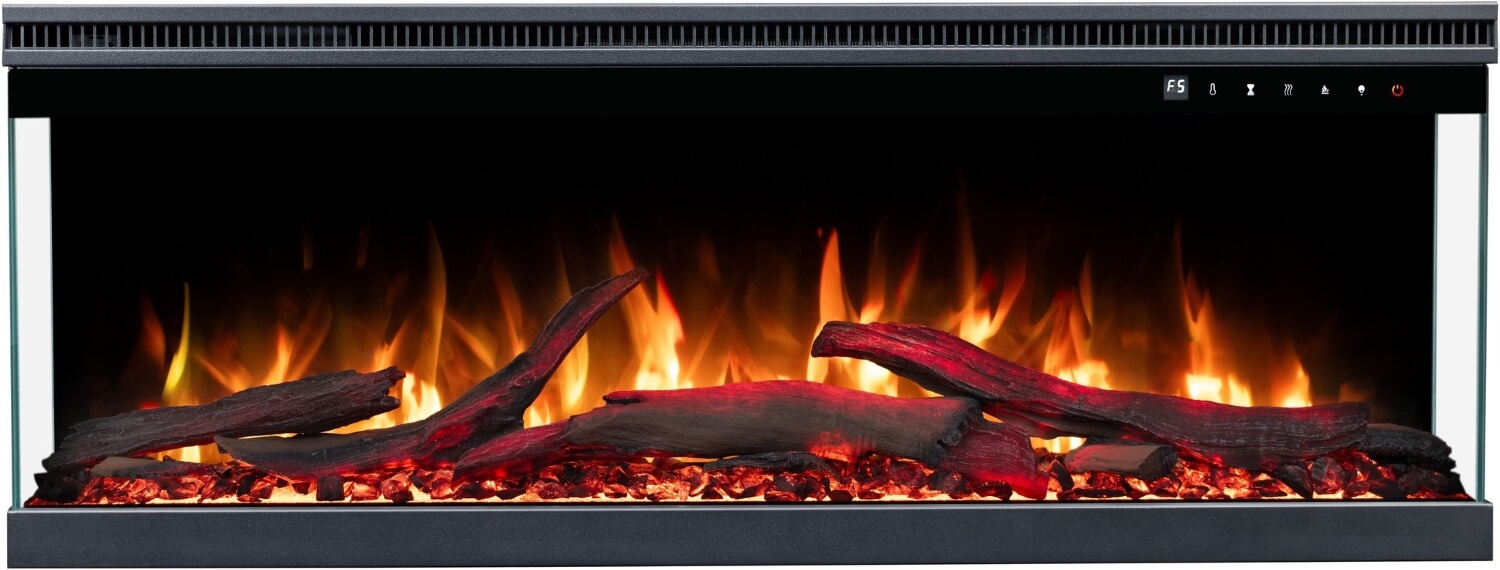 Trójstronne palenisko kominka elektrycznego LED Aflamo Unique 100 PRO z polanami oraz kryształkami