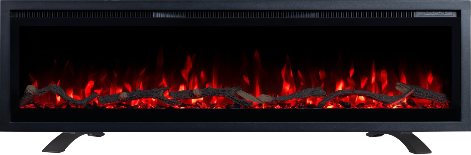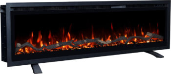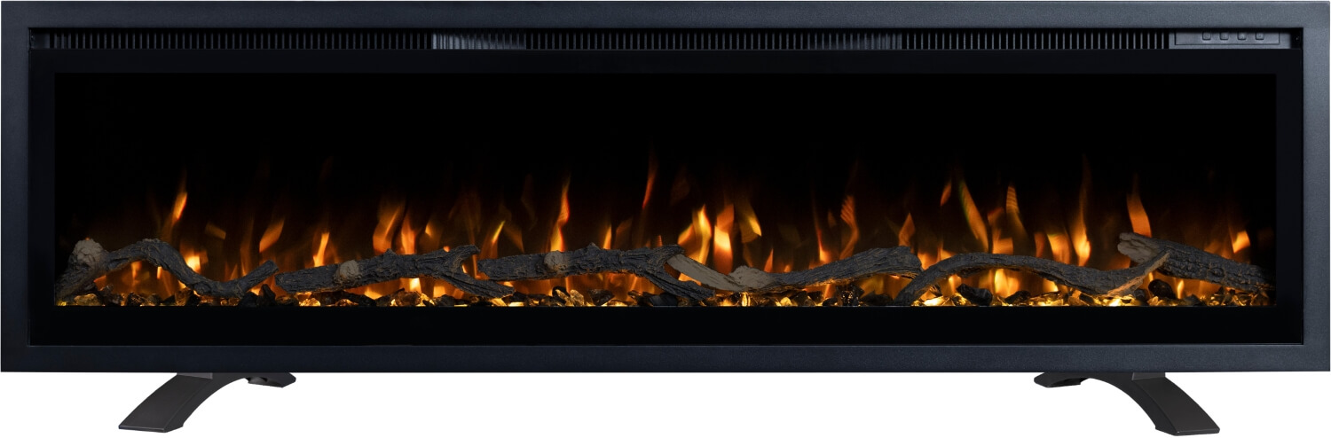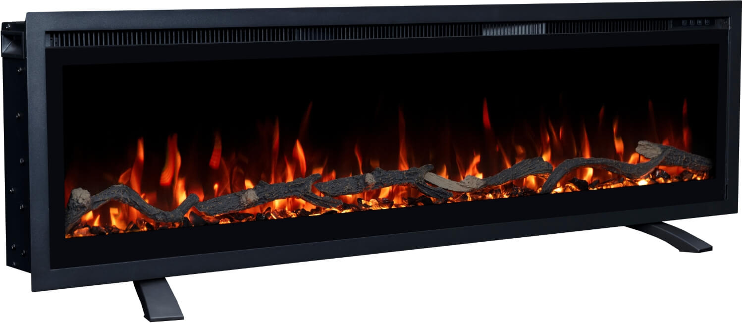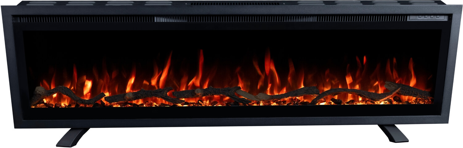 Montaż jest podobny. Wymaga precyzyjnego przygotowania szerszej wnęki zgodnie z wymiarami wkładu (152 cm), ale sam kominek jest zintegrowany. Smukły profil i wbudowany długi przewód zasilający ułatwiają osadzenie w zabudowie.