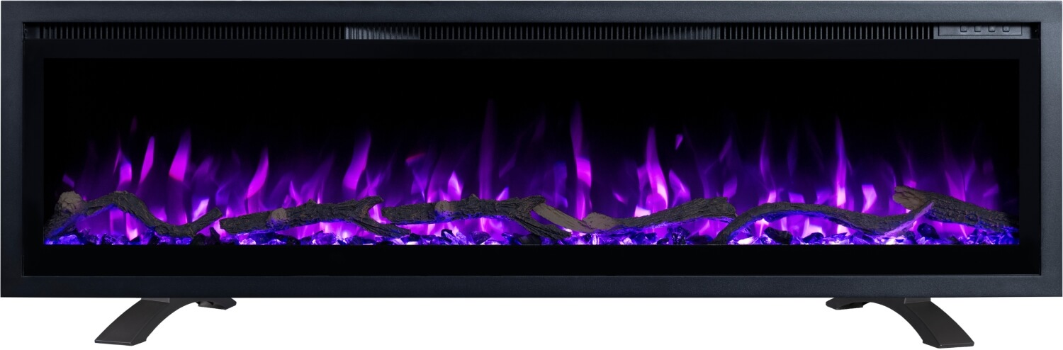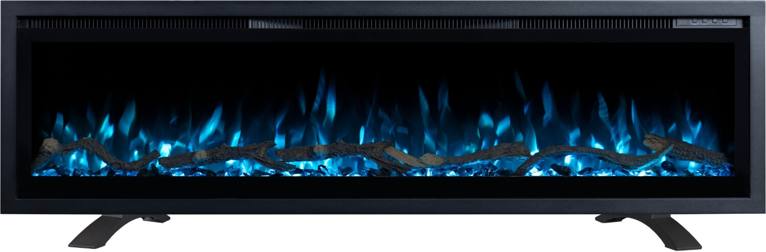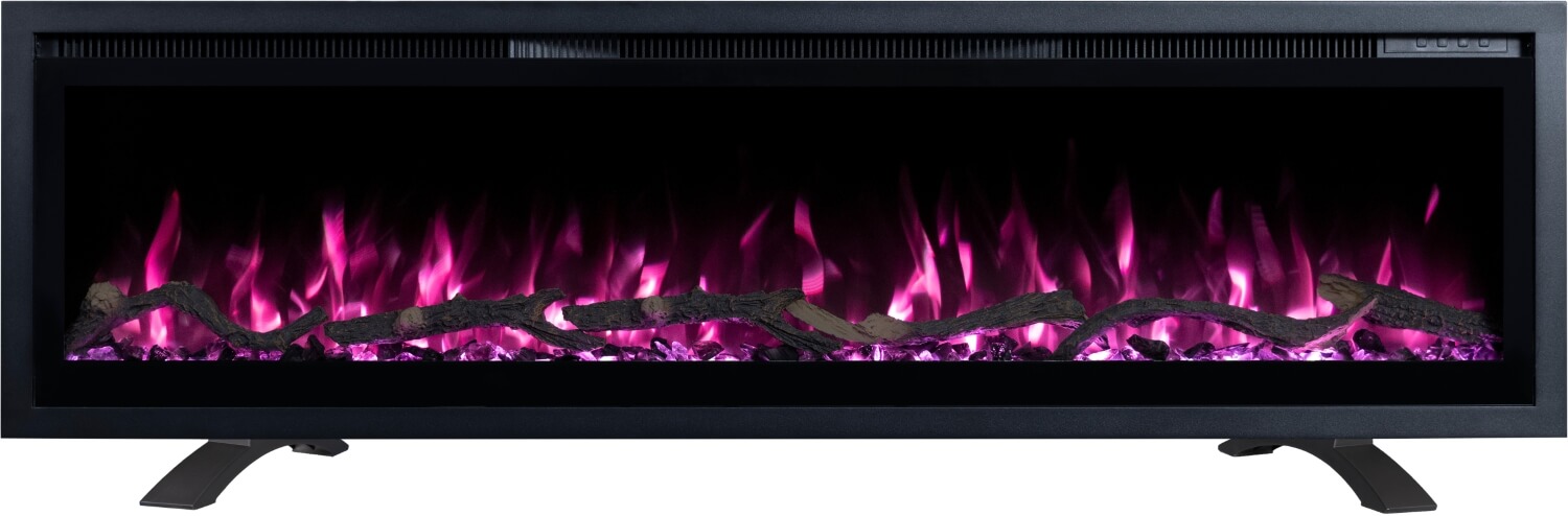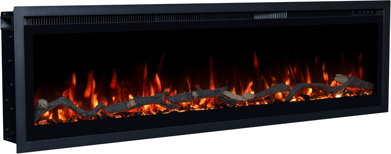Montaż jest podobny. Wymaga precyzyjnego przygotowania szerszej wnęki zgodnie z wymiarami wkładu (152 cm), ale sam kominek jest zintegrowany. Smukły profil i wbudowany długi przewód zasilający ułatwiają osadzenie w zabudowie.